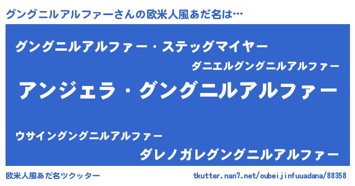| 意味不明あだ名 | 『住所不定無職グングニルアルファー(53歳)』 |