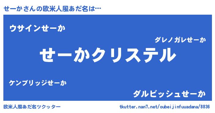 | ポケモン風あだ名 | 『セーカダネ』『ヒセーカ』 |