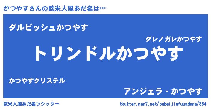 | 男性向けラノベタイトル風あだ名 | 『かつやす~年齢イコール彼女いない歴の魔法使い~』 |