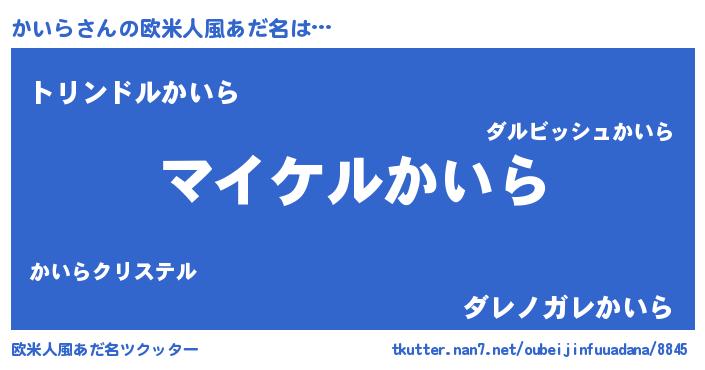 | 女子向けラノベタイトル風あだ名 | 『かいら姫と円卓の騎士』 |