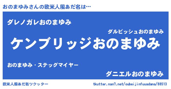 | 男性向けラノベタイトル風あだ名 | 『Re:おのまゆみから始める異世界生活』 |