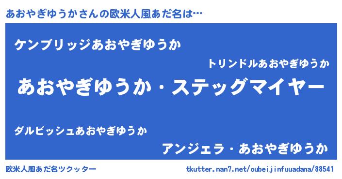 | 男性向けラノベタイトル風あだ名 | 『うちのあおやぎゆうかが世界を掌握している!』 |