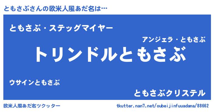 | 男性向けラノベタイトル風あだ名 | 『転生したらともさぶだった件』 |