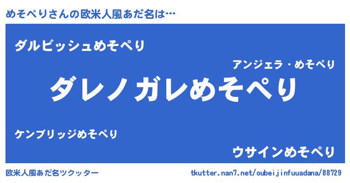 | ヘコむあだ名 | 『めそぺり(震え声)』『めそぷりん』 |