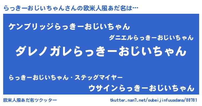 | 男性向けラノベタイトル風あだ名 | 『魔弾の王とらっきーおじいちゃん』 |