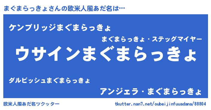 | 男性向けラノベタイトル風あだ名 | 『まぐまらっきょの嫁は女の子じゃないと思った?』 |