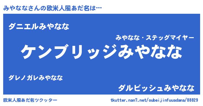 | 男性向けラノベタイトル風あだ名 | 『Re:みやななから始める異世界生活』 |