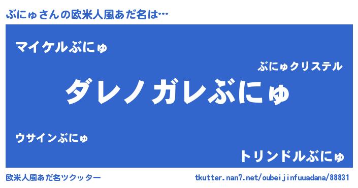 | 男性向けラノベタイトル風あだ名 | 『魔弾の王とぶにゅ』『ぶにゅの憂鬱』 |