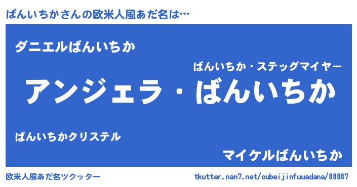 | 男性向けラノベタイトル風あだ名 | 『ばんいちかに滅ぼされるだけの簡単なお仕事です』 |