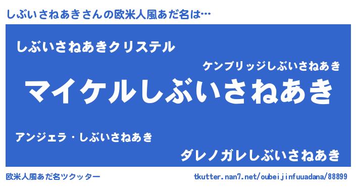 | 男性向けラノベタイトル風あだ名 | 『しぶいさねあきの憂鬱』 |