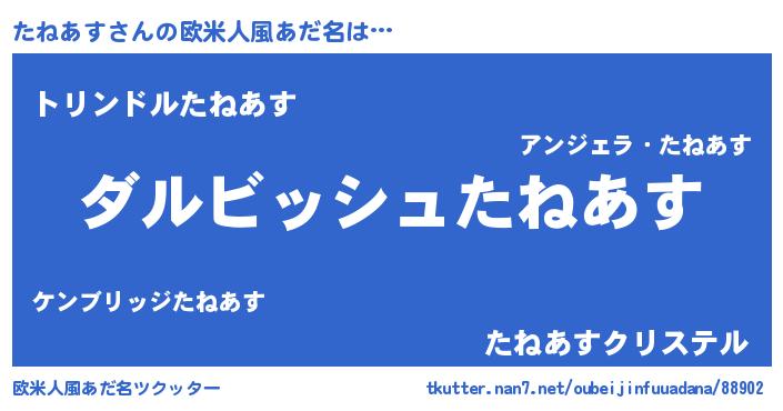 | 男性向けラノベタイトル風あだ名 | 『たねあすという概念が存在しない退屈な世界 』 |