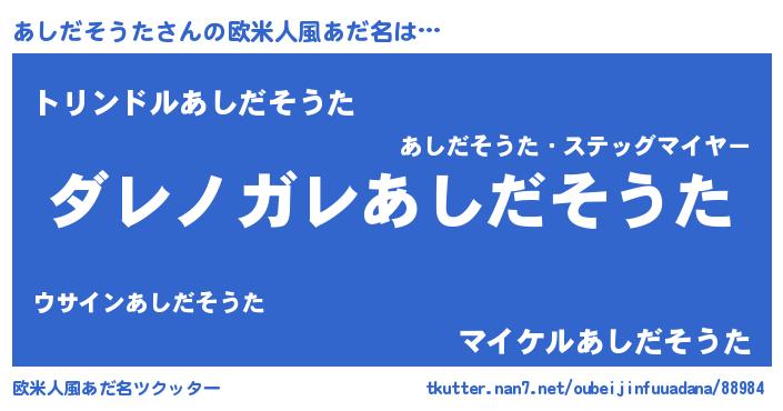 | 男性向けラノベタイトル風あだ名 | 『この素晴らしい世界にあしだそうたを!』 |