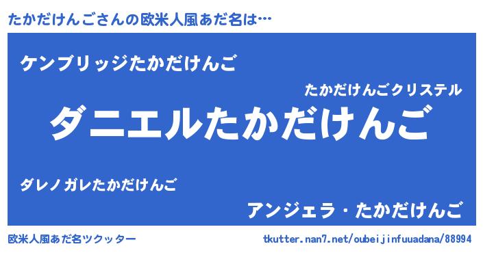 | 男性向けラノベタイトル風あだ名 | 『ノーゲーム・ノータカダケンゴ』 |