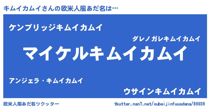 | 男性向けラノベタイトル風あだ名 | 『キムイカムイの憂鬱』 |