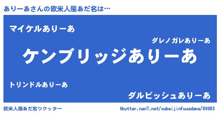 | 女子向けラノベタイトル風あだ名 | 『ありーあなんてお断りですっ。』 |