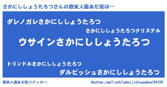 | 女子向けラノベタイトル風あだ名 | 『さかにししょうたろつの卵を拾いまして』 |