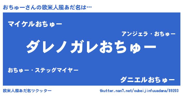 | 男性向けラノベタイトル風あだ名 | 『この素晴らしい世界におちゅーを!』 |