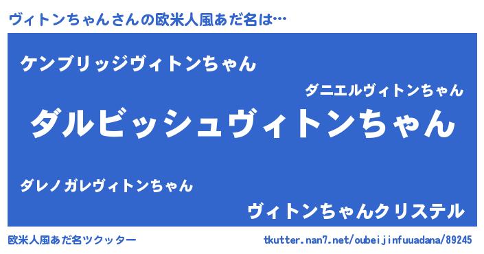 | 胡散臭い通販商品みたいなあだ名 | 『来世でも幸せになれる健康食品…その名も「ヴィトンちゃん」』 |