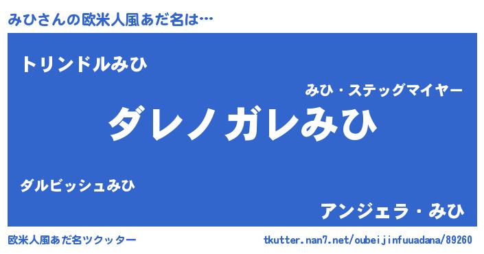 | 意味不明あだ名 | 『住所不定無職みひ(65歳)』『永久保存みひ』 |