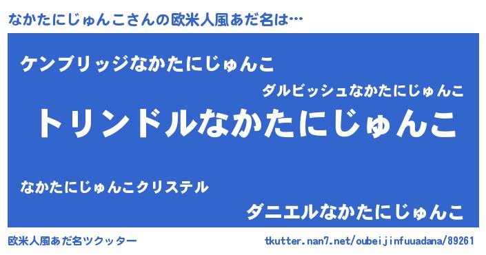 | 男性向けラノベタイトル風あだ名 | 『なかたにじゅんこ~年齢イコール彼女いない歴の魔法使い~』 |