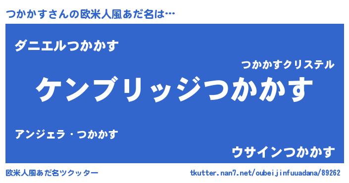 | 男性向けラノベタイトル風あだ名 | 『Re:つかかすから始める異世界生活』 |