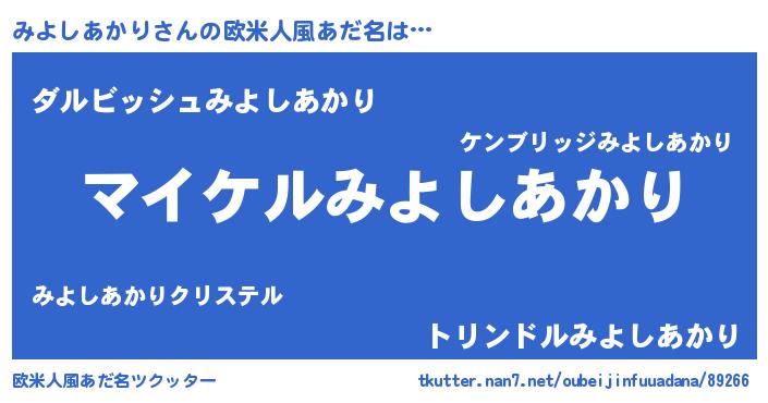 | 男性向けラノベタイトル風あだ名 | 『ミヨシアカリアートオンライン』 |