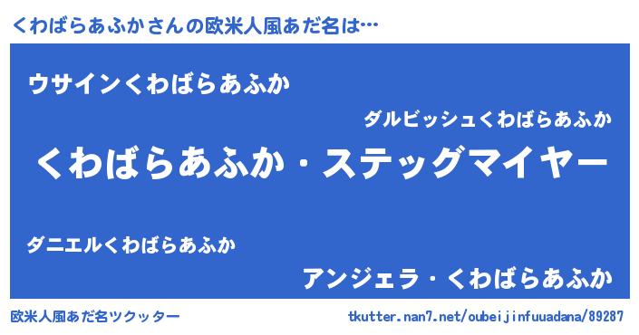| 意味不明あだ名 | 『とにかく怪しいくわばらあふか』 |
