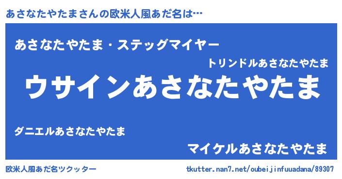 | 男性向けラノベタイトル風あだ名 | 『あさなたやたまの嫁は女の子じゃないと思った?』 |