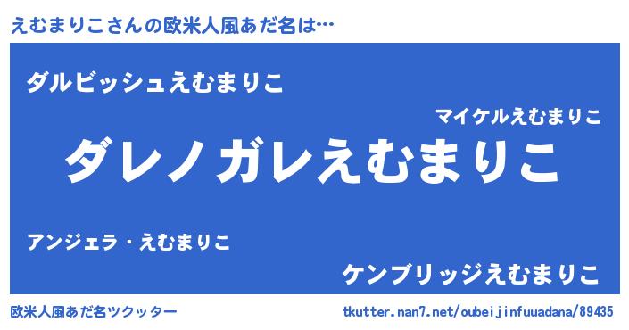 | 男性向けラノベタイトル風あだ名 | 『この素晴らしい世界にえむまりこを!』 |
