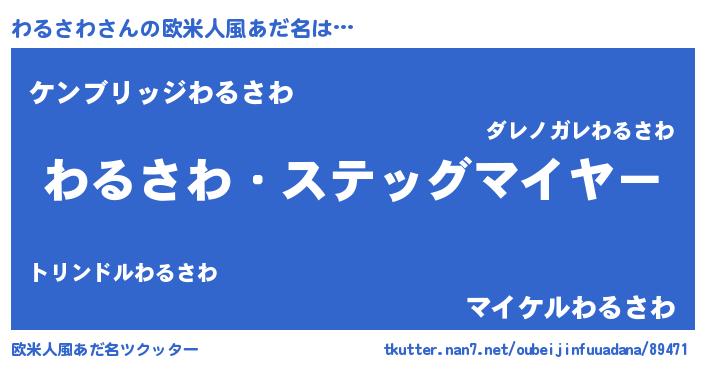 | 男性向けラノベタイトル風あだ名 | 『緋弾のワルサワ』『わるさわの憂鬱』 |
