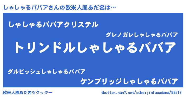 | 男性向けラノベタイトル風あだ名 | 『シャシャルババアスレイヤー』 |