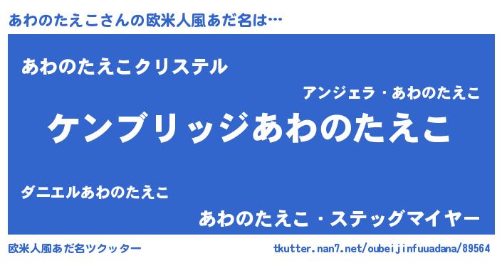 | 男性向けラノベタイトル風あだ名 | 『Re:あわのたえこから始める異世界生活』 |