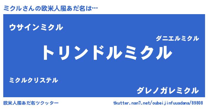 | 男性向けラノベタイトル風あだ名 | 『転生したらミクルだった件』 |
