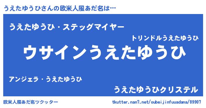 | 男性向けラノベタイトル風あだ名 | 『うえたゆうひの嫁は女の子じゃないと思った?』 |