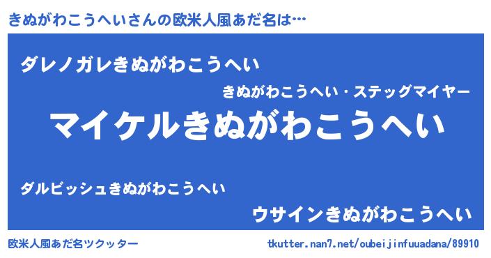 | 男性向けラノベタイトル風あだ名 | 『きぬがわこうへいの憂鬱』 |
