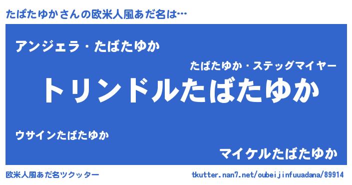 | 男性向けラノベタイトル風あだ名 | 『タバタユカスレイヤー』 |