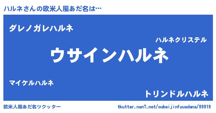 | 男性向けラノベタイトル風あだ名 | 『ハルネの嫁は女の子じゃないと思った?』 |