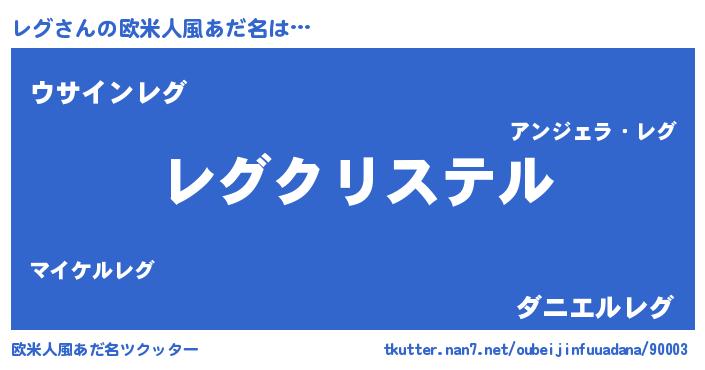 | 女子向けラノベタイトル風あだ名 | 『レグの雑貨屋さん』『レグ恋絵巻』 |