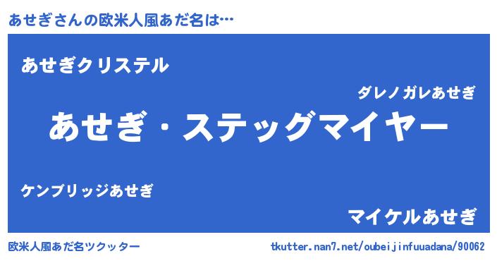 | 男性向けラノベタイトル風あだ名 | 『うちのあせぎが世界を掌握している!』 |
