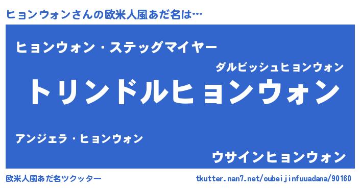 | 男性向けラノベタイトル風あだ名 | 『転生したらヒョンウォンだった件』 |