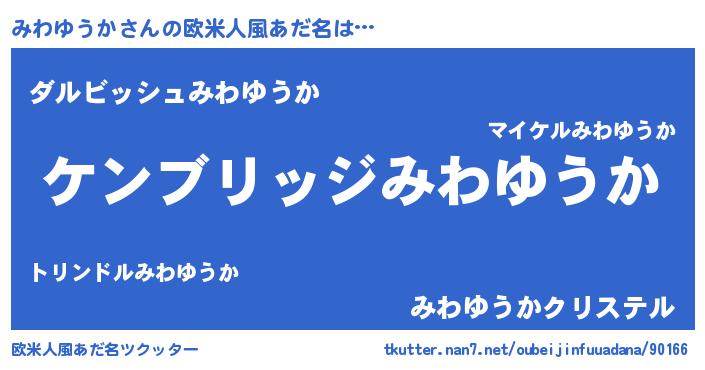 | 男性向けラノベタイトル風あだ名 | 『Re:みわゆうかから始める異世界生活』 |