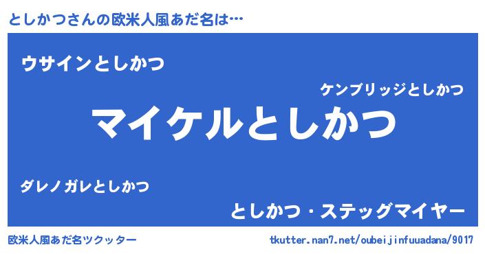 | 男性向けラノベタイトル風あだ名 | 『としかつの憂鬱』 |