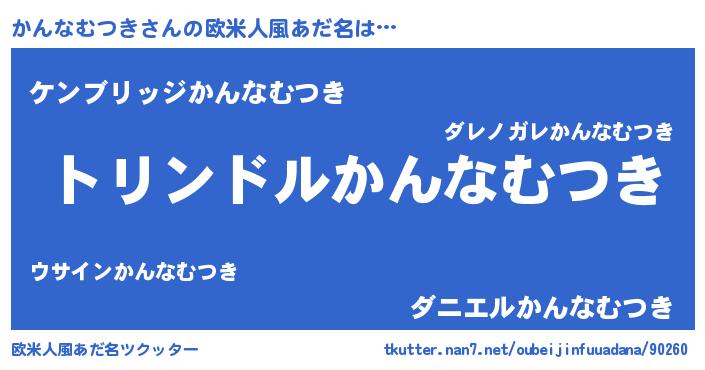 | 男性向けラノベタイトル風あだ名 | 『かんなむつき~年齢イコール彼女いない歴の魔法使い~』 |