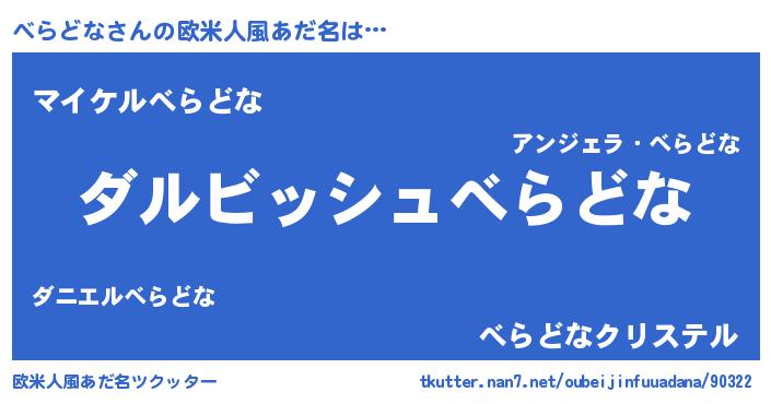 | 男性向けラノベタイトル風あだ名 | 『べらどなという概念が存在しない退屈な世界 』 |