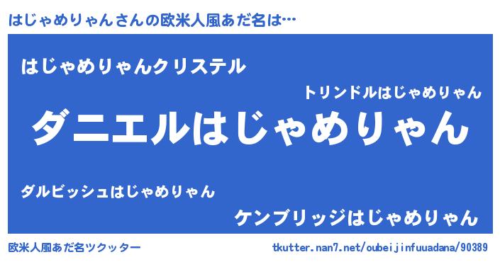 | 男性向けラノベタイトル風あだ名 | 『おまえをオタクにしてやるから、俺をはじゃめりゃんにしてくれ! 』 |