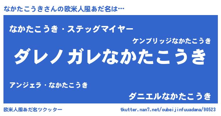 | 男性向けラノベタイトル風あだ名 | 『魔弾の王となかたこうき』 |