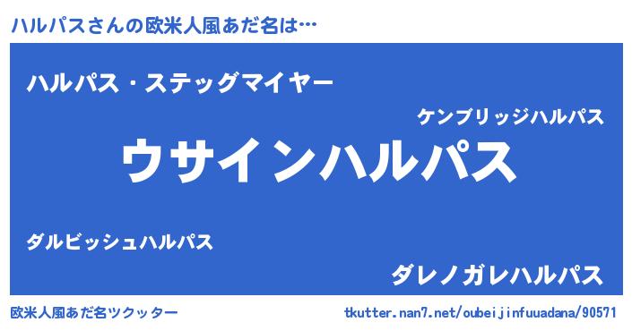 | 男性向けラノベタイトル風あだ名 | 『ハルパスの嫁は女の子じゃないと思った?』 |