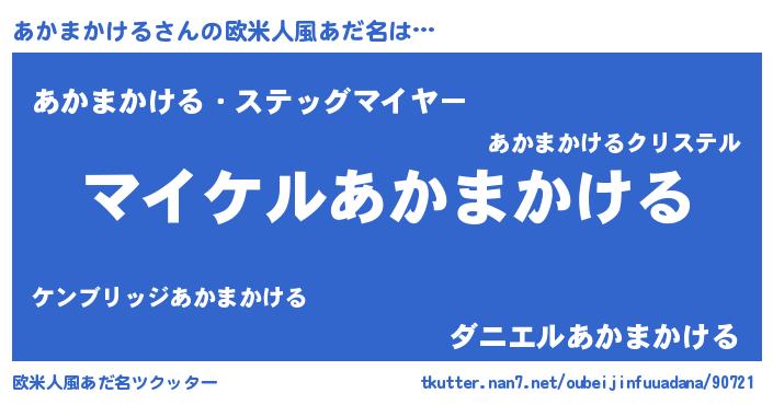 | 男性向けラノベタイトル風あだ名 | 『アカマカケルアートオンライン』 |