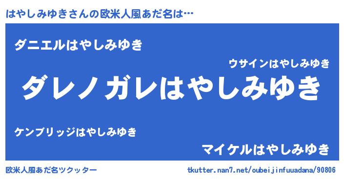 | 意味不明あだ名 | 『住所不定無職はやしみゆき(77歳)』 |