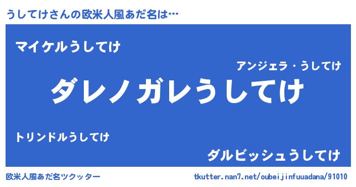 | 男性向けラノベタイトル風あだ名 | 『魔弾の王とうしてけ』『うしてけの憂鬱』 |